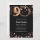 A modern, stylish photo invitation for a 90th birthday party. A classic black background, decorated with rose gold stars. Personalise and add your party details.