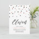 Celebrate your special day with this simple minimal 11th birthday party invitation. This design features a stylish lettering script with hexagon-shaped confetti with a black & rose gold colour combo. More designs available at my shop BaraBomDesign.