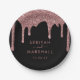 Black Rose Gold Sparkle Glitter Drips Wedding Paper Plate