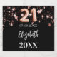A classic black background decorated with rose gold stars. Personalise and add a date, name and year of birth. Age number written with a balloon style font.