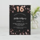 A classic black background, decorated with rose gold stars. Personalise and add a name and party details. Number 16 is written with a balloon style script.