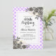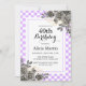 This elegant flora birthday invitation features gold and black rose flowers with leaves arrangement on the white and mauve chequered backdrop.