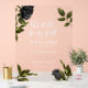 Elegant wedding party sign featuring script font with an illustration of black roses. The text says "till death do us part."