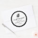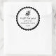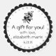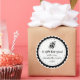 A lovely sticker with a black, abstract rose bouquet. The words "Thank You" go around the black, whimsical scalloped edged background. The sample text is "A gift for you-with love" with your name and event date! Customise all text and font colour! Perfect for bridal or baby shower guest gifts. TIP: WHEN CHANGING PRODUCT SIZE OR STYLE- ADJUST TEXT AND IMAGE TO FIT INSIDE THE RED DOTTED LINE.