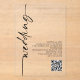 Black Rotated Calligraphy QR Code Wedding. Wedding is in a rotated set script along the left hand side, easily personalise the rest of the words as required. Change the sample URL to that of your own wedding website and the QR code will automatically change to your own QR code.