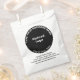Business brand in black round shape on customisable paper bag. Customise it by uploading your business logo, typing your business name, city or town, state, address, phone number, e-mail and website, a marketing strategy to advertise your business or to promote your brand. Customisable packaging material that you can use to build brand name awareness. You can also use it as a wrapper for gifts or favours for your customers or clients. Please check the appearance after uploading logo and typing texts. If the appearance is pleasing to you, you can place your order now. If you need to resize and reposition the logo and texts, please adjust in the design tool. You can also change the font style, font colour and the colour of the round shape in the design tool.