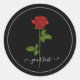 Black Round Sticker with Red Rose & Custom text