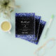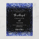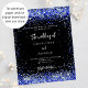 A stylish black background, decorated with royal blue confetti. Personalise and add your names and details.