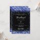 A stylish black background, decorated with royal blue confetti. Personalise and add your names and details.