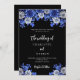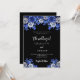 Black royal blue florals wedding invitation
