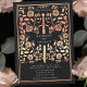 Step into a tale of romance and legend! These mediaeval fantasy wedding invitations feature a regal sword entwined with rose gold florals on a black backdrop. They are perfect for couples seeking an enchanting and timeless touch for their special day. Note that the rose gold on these invitations are NOT printed with real foil and are printed in flat colours.