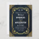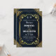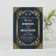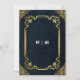 Medieval wedding invitation royal black with gold frame ornate on with a gold ink pour effect (the gold is a digital effect, not real foil) and white medieval calligraphy. Classy and elegant, moody and romantic wedding invitation.