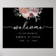 This wedding Welcome poster features painted watercolor pink flowers and greenery with elegant white fonts on a midnight black background. This poster is part of matching wedding suite that includes a wedding Invitation and many other wedding essentials.