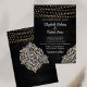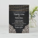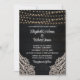 Add a touch of bohemian charm to your wedding invitations with this Black Rustic Wooden Wedding Invitation. The black wooden background sets the stage for a magical celebration, adorned with glowing string lights that create a romantic atmosphere. Delicate white floral lace patterns frame the corners of the invitation, adding an elegant and feminine touch. The combination of a vintage script font and a legible serif font in white creates a beautiful contrast against the dark background, ensuring that all the details are easily readable. This invitation is perfect for couples seeking a unique and enchanting wedding theme. Set the tone for your special day with our Rustic Elegance Wedding invitations that will leave a lasting impression on your guests.