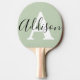 Personalised ping pong paddle with your name and family name initial in white, black and light grey green, one side has background in white the other in the sage green. Reads Addison A or personalise with your own name and initial. Designed by www.mylittleeden.com on zazzle.