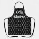 This apron has an art deco design of white half circles connect with lines on a field of black.