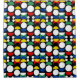 Seamless Repeat Geometric Black Scandinavian Nordic bauhaus Style Mid century Red, black, yellow, blue and green circles and semi circle shapes Decorative Modern Pattern Design on white background
