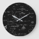 Elegant black and white clock with a math formula patterned background. Great for mathematicians, teachers and home decor. Illustrated and designed by Patricia Alvarez.
