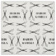 White fabric for a hair stylist or hair dresser with six pair of scissors framing your name, monogram, or business name.