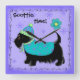 Black Scottie Time Dog Personalised Lavender Square Wall Clock