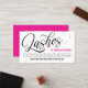 Stylish loyalty punch card for a lash artist in an eye catching design with a lash pattern in gold and white, black swirly script, and bold magenta as the accent colour.