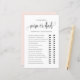 Guess who? Mum or dad? Add this fun and playful game to your baby shower. It features a black whimsical script, classic typography, blush pink background. You can personalise the backside of this baby shower game card. This guessing game card is perfect for any baby shower theme and season.
