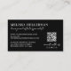 On the back, a solid black background is paired with all white fonts and details, with your contact information on the left and the QR code and optional social media icons placed at the bottom right for a balanced layout.