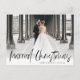 wedding announcement holiday card with elegant red script and a thank you message to your guests. The couples image can be personalised.