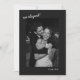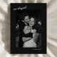 This elopement announcement features "we eloped!" in casual handwritten script at the top of a true black card with a large black and white couple photo and your date and location below. The back has a second photo with room for a few sentences about your day and a sign-off with your names — so you can actually tell the story, not just share the news. It's personal and a little cinematic, perfect for couples who want their announcement to feel like them.