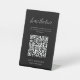 Black share the love QR Code pedestal sign. Place these signs at your wedding reception tables so guests can scan to upload the photos they took at your wedding reception to your album or social media. To generate a new QR code on the design, add the URL of your online wedding album or social media handle in the area provided, using the "personalise" feature. A brand new QR code will then be added to to the design.