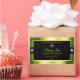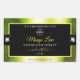 The design features a noble shimmering yellow green marbled frame with fine decor lines, on a plain black background.