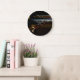 Wall Clock, 25.4 cm Round Black Wooden Frame