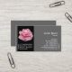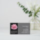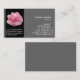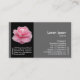 A business or profile card template with a band on the left, with a single flower motif, decorated with vertical text captions labelling the address area and contact details. The reverse of the card has the same colour theme as the front but has been left blank which can be left as is, or further customised. Suitable for a variety of businesses.