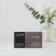 A business or profile card template with a band on the left, decorated with vertical text captions labelling the address area and contact details. The reverse of the card has the same colour/texture theme as the front but has been left blank which can be left as is, or further customised. Suitable for a variety of businesses.