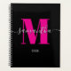 Hot pink, black and white contemporary monogram with elegant signature style calligraphy design can be customised.