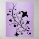 Black Silhouette Abstract Scroll Flowers Purple Poster