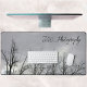 Black silhouettes of tree branches against a cloudy grey sky gives this photographic Grey desk mat its chic gothic appeal. Personalise this desk accessory with a Name or your own text.
