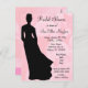 Black Silhouette Bride Pink Floral Background Invitation Postcard