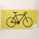 This beach towel design features a black silhouette of a bicycle. It could make a great gift for somebody who really likes bike riding.