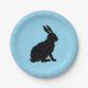 Black Silhouette Sitting Rabbit on light Blue Paper Plate