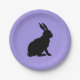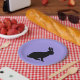 Black Silhouette Sitting Rabbit on Purple Paper Plate