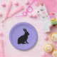 This paper plate is purple with a bunny rabbit done in black silhouette in a sitting position. Minimalist style great for Easter or spring celebrations.