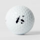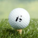 Black silhouettes of golf items on white golf balls