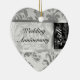 Elegant silver tones vintage floral damasks with touch of black 25th wedding anniversary christmas ornament