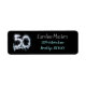 A fancy, black, and silver modern 50th birthday return address label you can personalise and send out with your fiftieth birthday party bash invitation. The text colour can be changed as well as the font and font size using the edit menu.