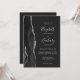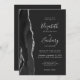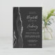 The left-hand edge of this elegant modern wedding invitation features a black watercolor agate border trimmed with faux silver glitter. The customisable text combines handwriting, copperplate and italic fonts in light silver grey on an off-black background. The reverse side provides space for wedding details on a solid dark background, along with a QR code guests can scan to visit your website and RSVP, which saves the cost of printing and mailing separate RSVP cards.