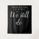 stylish elegant renew vows photobooth, fancy photo booth backdrop tapestries, personalised couple names photo prop, we still do vow renewal, custom 25th anniversary party backdrop, 25 years anniversary party banner, silver wedding anniversary for them, anniversary backdrop twenty fifth party, rustic modern calligraphy 5th backdrop, black and silver ceremony 10th