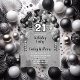 Celebrate in style with this vibrant and eye-catching 21st birthday party invitation, featuring a stunning cascading balloon arch design in shades of black and silver, and accented with white. The bold '21' at the centre adds a playful yet chic touch, perfectly setting the tone for a memorable celebration. The design incorporates elegant white and black text, complemented by subtle silver-toned grey accents, all thoughtfully arranged in a mix of retro and script fonts that enhance the festive atmosphere. This invitation is carefully crafted to evoke excitement and joy, making it the perfect choice to celebrate this milestone birthday with flair and style.