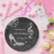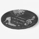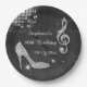 Women's personalised, elegant custom 60th birthday party celebration paper plates. Beautiful black and silver templates for a woman's 60th year old birthday. These plates have a funky retro disco mirror ball, glamourous printed image rhinestones / diamonds glitter, sequins, jewels sparkle high heels stilettos shoes, and glittery musical note / music note with sparkles on a classy black with white lights and sparkles background. Chic, cute, girly, modern paper plates with trendy, fashionable colours. These cool, groovy, stylish, sophisticated, pretty party plates are decorated / printed on one side only. Perfect plates for dinner dance dancing event parties. PLEASE NOTE: All products on Zazzle have flat printed images. If you need any assistance customising your product please contact me through my store and I will be happy to help.