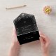 A trendy black background, decorated with faux silver glitter, sparkles. Personalise and add your names, monogram and wedding details. White coloured letters.